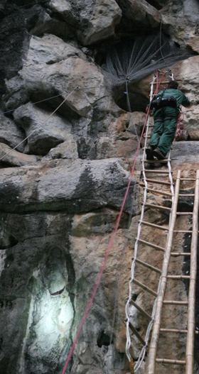 Pendant plus d’une dizaine de jours, l’équipe a attendu que les singes reviennent dormir à la grotte. Un peu découragé, M. Adler s’est rendu dans un temple de l’île pour demander un petit coup de pouce du destin. Et le lendemain en soirée, il a été prévenu par deux collègues vietnamiens chargés de surveiller la grotte que les deux langurs étaient revenus dans la grotte. Immédiatement, M. Adler a pris la route. «Les gardiens sur place devaient attendre en silence le retour des singes. Interdiction de fumer ou d’utiliser le téléphone. Mais aussi interdiction de trop se dissimuler, a expliqué M. Adler. Car s’ils s’aperçoivent que des humains se cachent à proximité, les langurs vont se méfier. C’est pourquoi il faut rester sur place mais faire semblant de ne pas trop s’intéresser à eux. Une fois que les singes sont rentrés dans la grotte, mes collègues vietnamiens ont attendu une demi-heure afin d’être sûrs qu’ils soient endormis, puis ils ont abaissé le filet».