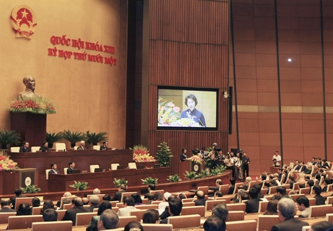 | Séance de clôture de la 11e session de la XIIIe législature de l'Assemblée nationale, le 12 avril à Hanoi. |