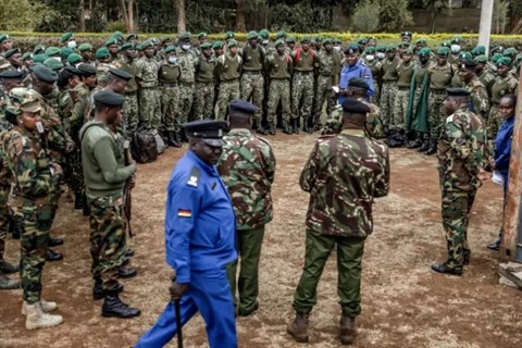 | Briefing des forces de sécurité avant le scrutin, à Nairobi le 8 août. |
