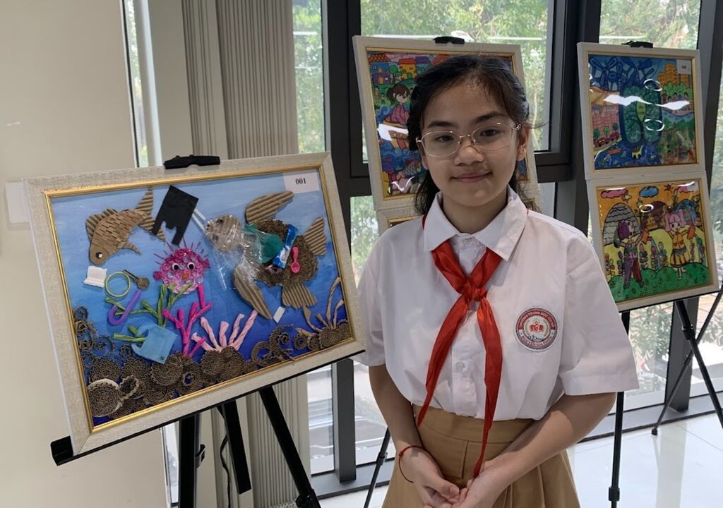 "L’inspiration est venue des voyages avec mes parents. J’ai vu la mer polluée de plus en plus. La pollution marine est un risque auquel notre monde est confronté. Avec l’œuvre 'Cri de l’océan bleu', j’aimerais appeler à nos efforts communs pour sauver l’océan. Chaque petite action d’aujourd’hui apporte une contribution positive à l’avenir", a partagé Chu Hà Giang, élève de 6A5 du collège Nguyên Gia Thiêu, arrondissement de Long Biên (Hanoï), qui s’est vu décernée le prix spécial du concours, recevant ainsi un appareil photo et une boîte de Lego. Les premier, deuxième et troisième prix ont chacun reçu un ensemble de jouets Lego.