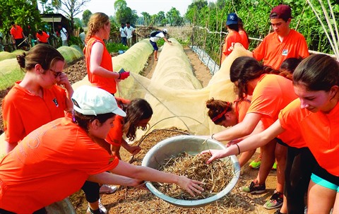 | De jeunes "bamboobikers" aident aux récoltes dans le delta du Mékong. |