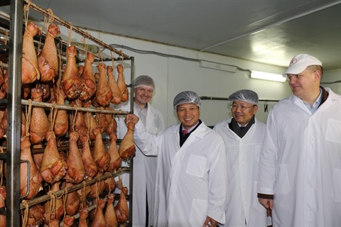 | L'ambassadeur vietnamien en Russie, Ngô Duc Manh (3e à droite), visite la compagnie russe Krasnobor. |