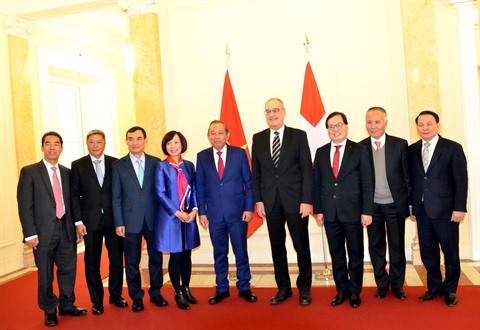 Truong Hoa Binh a demandé au Parlement suisse de continuer de soutenir les programmes de coopération au développement destinés au Vietnam, de soutenir les négociations de l’Accord de libre-échange entre le Vietnam et l’Association européenne de libre-échange (AELE) dont la Suisse est membre. Il a également reçu une vingtaine de dirigeants de groupes de renom du monde, dont Amazon Web Services, AstraZeneca, Novartis, Carlsberg, Hyosung, Spring Studios. Il a affirmé la position, la détermination et les efforts constants du gouvernement vietnamien pour améliorer l'environnement d’affaires, la compétitivité, tout en encourageant à perfectionner les institutions de l'économie de marché, renouveler le modèle de croissance et restructurer l'économie, participer à la 4e révolution industrielle, et profiter des opportunités des ALE signés.