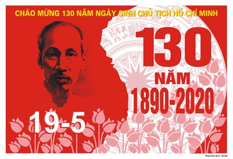 | Une affiche à l'occasion du 130e anniversaire de la naissance du Président Hô Chi Minh (19 mai). |