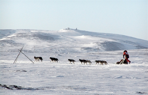| Un concurrent de l'Iditarod en Alaska, lors de l'édition 2007. |
