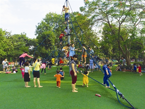 | Les places de jeux, ici dans le parc de l’arrondissement de Câu Giây, à Hanoi, ne sont pas assez nombreuses. |