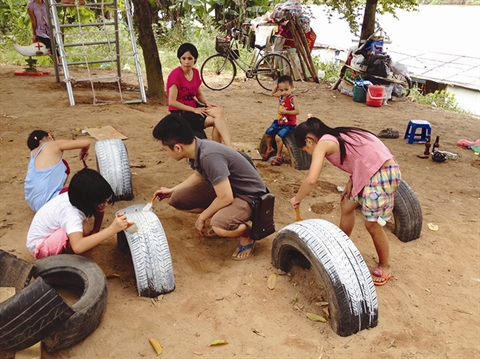 Outre l’aire de jeux mobile du Vieux quartier de Hanoi, Think Playgrounds en a notamment aménagé une près du fleuve Rouge. Là aussi, des matériaux recyclés ont été utilisés. De vieux pneus ont été transformés en balançoires colorées, des pièces de bois en fauteuils à bascule. Après l’école, les enfants du village de Phao, de l’arrondissement de Long Biên, s’y rendent et s’amusent. La joie se lit sur leurs visages comme sur ceux des parents. Ce succès prouve que réaliser un espace de loisirs avec une petite somme d’argent est possible. La place de jeux du fleuve Rouge n’a en effet coûté que 15 millions de dôngs. En moyenne, il faut compter moins de 10 millions de dôngs pour une superficie de quelque 100 m2. Soit beaucoup moins cher que pour des espaces de loisirs traditionnels. Si le coût de ses places de jeux est moindre, Think Playgrounds met toutefois un point d’honneur à assurer la sécurité des enfants. Les matériaux recyclés sont réparés, renforcés et testés.