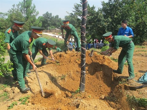 | Plantation d'un arbre lors de la cérémonie de lancement de la campagne de protection de l'environnement à Hanoï, le 26 juin. |