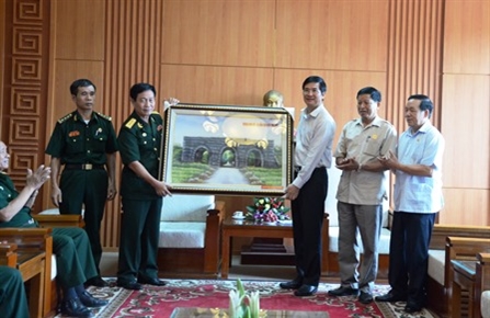 | La délégation de l’Association des anciens combattants de Thanh Hoa offre un tableau aux autorités provinciales de Quang Nam, le 21 juin. |