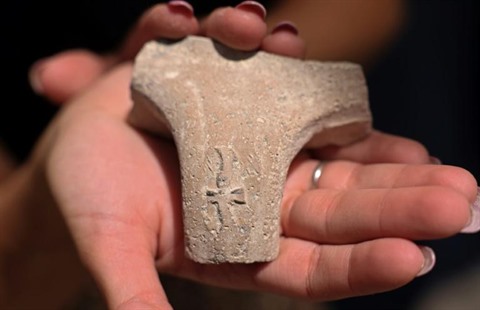 | Une pierre trouvée près d'un pan de la muraille de Jérusalem, le 14 juillet, à Jérusalem-Est. |