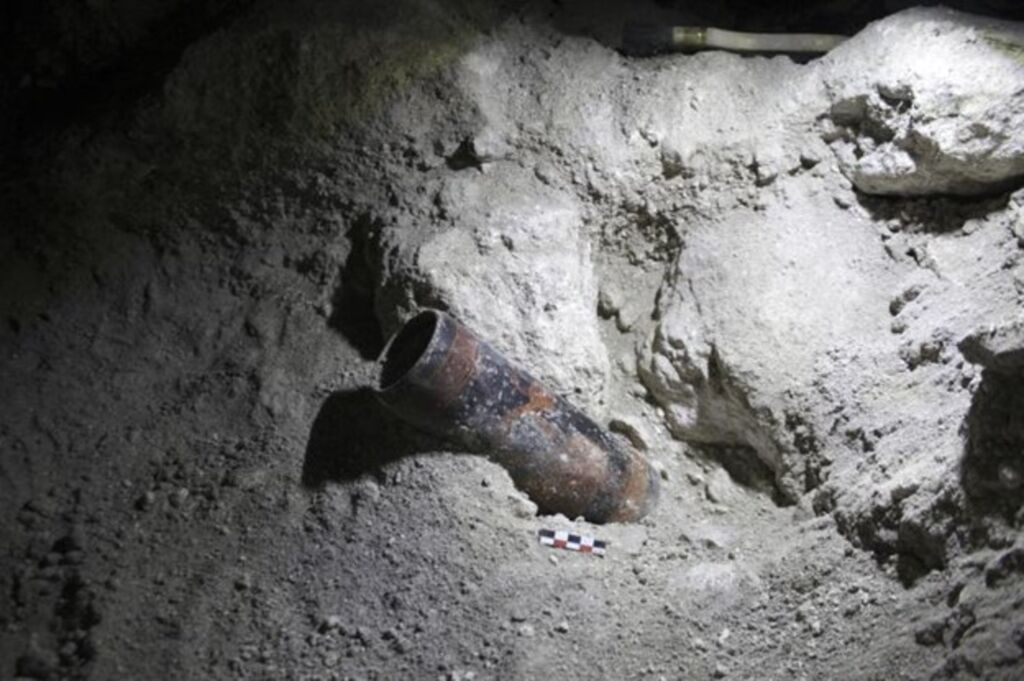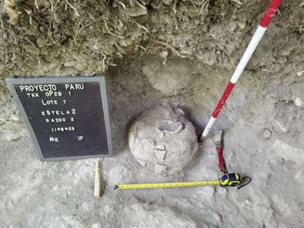 | Cette photo non datée, publiée par le ministère guatémaltèque de la Culture le 29 mai, montre un pot découvert sur le site archéologique d'Uaxactún, dans le département de Petén, au Guatemala. |