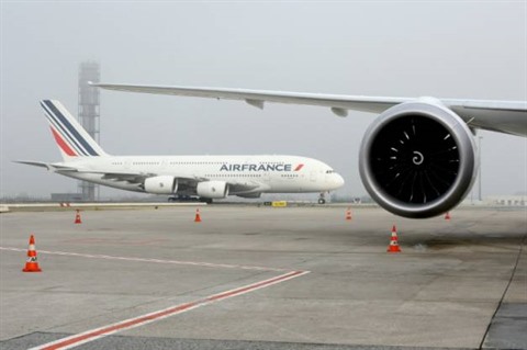 | Un A380 d'Air France sur le tarmac de l'aéroport Charles-de-Gaulle, à Roissy, le 2 décembre 2016. |