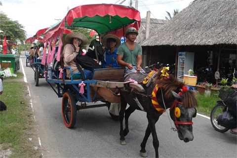| Les touristes vietnamiens et étrangers apprécient les balades en charrette. |