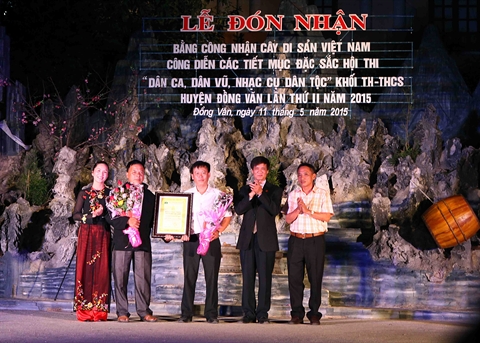 | Cérémonie de remise de certificat reconnaissant des banians du hameau de Thiên Huong, district de Dông Van, en tant qu’"Arbre patrimonial du Vietnam", le 11 mai dans la province de Hà Giang (Nord). |