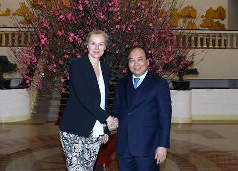 | La ministre néerlandaise du Commerce extérieur et de la Coopération au développement, Sigrid Kaag, reçue par le Premier ministre Nguyên Xuân Phuc, le 6 février à Hanoï. |