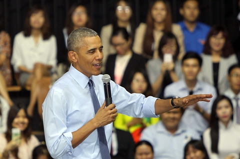 | Le président américain Barack Obama lors de la rencontre avec des jeunes, le 25 mai à Hô Chi Minh-Ville. |