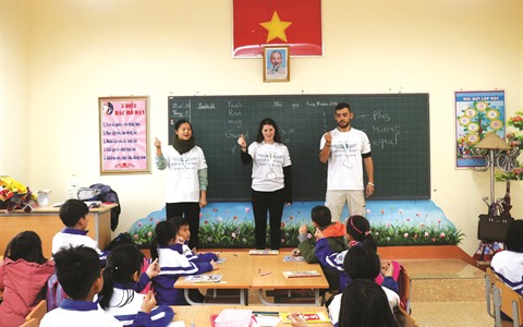 | Lors d’un cours d’anglais avec des bénévoles israéliens à l’École primaire-collège Lê Van Tám. |