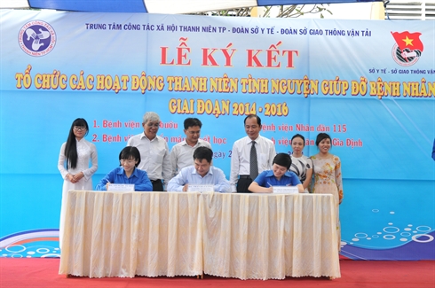 | Cérémonie de signature du programme permettant à de jeunes bénévoles d’aider les patients dans les hôpitaux de Hô Chi Minh-Ville pour la période 2014-2016. |