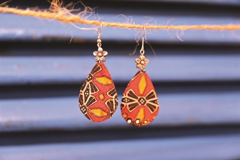 Peu à peu, elle a commencé à utiliser de petits morceaux de tissu ou des feuilles glanées dans la rue pour fabriquer des boucles d’oreilles aux couleurs classiques dont le brun "aile de cancrelat" (cánh gián), qui peuvent se combiner facilement avec des vêtements de tous les jours.