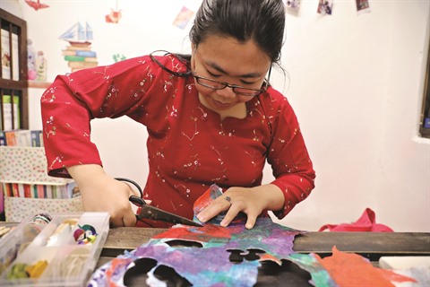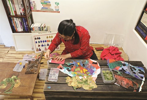Contrairement aux sacs en plastique, avec les petits morceaux de tissu, le plus difficile est de choisir la texture. Elle veut en effet conserver la texture d’origine pour créer des produits de valeur esthétique élevée. Elle souhaite également que les gens achètent des produits durables. Pour enrichir ses boucles d’oreilles, Nhung utilise encore des feuilles de papayer, de périlla ou de gâc (Momordica cochinchinensis), qui sont séchées à l’ombre pendant longtemps afin qu’elles ne soient pas cassantes et que les veines soient belles.