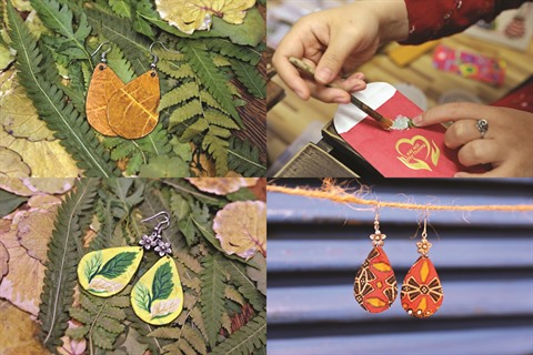 Peu à peu, elle a commencé à utiliser de petits morceaux de tissu ou des feuilles glanées dans la rue pour fabriquer des boucles d’oreilles aux couleurs classiques dont le brun "aile de cancrelat" (cánh gián), qui peuvent se combiner facilement avec des vêtements de tous les jours.