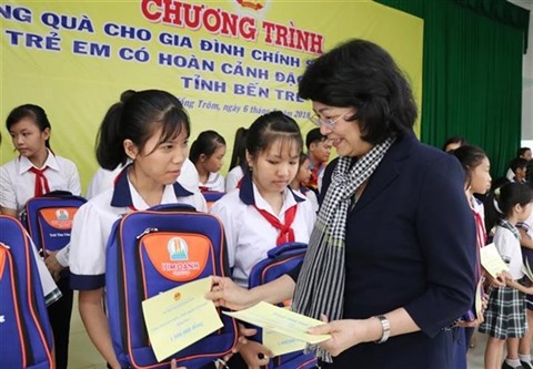 Au total, 50 paquets de cadeaux ont été remis aux bénéficiaires de la politique d'assistance sociale et aux familles affectées par les agent orange/dioxine dans le district de Giong Trôm. De plus, 200 enfants pauvres des districts de Ba Tri et Giong Trôm ont reçu des cadeaux et des outils d'apprentissage.