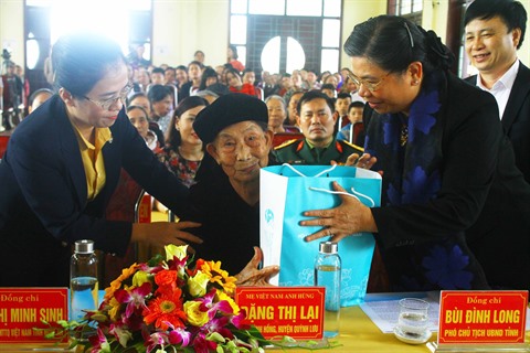 | La vice-présidente de l’AN, Tong Thi Phong, offre le 6 janvier des cadeaux à 20 familles bénéficiaires de politiques sociales dans la povrince de Nghê An (Centre). |