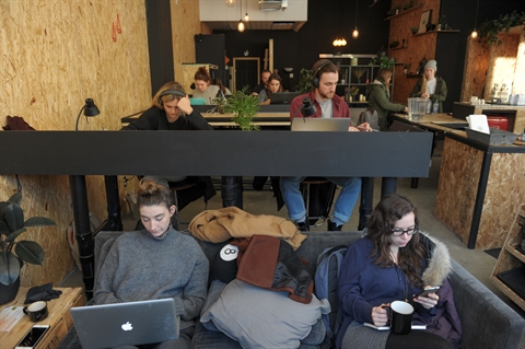 | Assis dans le canapé ou à un bureau, le Gab est un endroit populaire pour les travailleurs indépendants. |