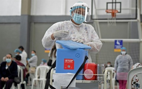 | Un personnel médical manipule des vaccins AstraZeneca dans un centre de vaccination à Bogota, le 7 avril. |