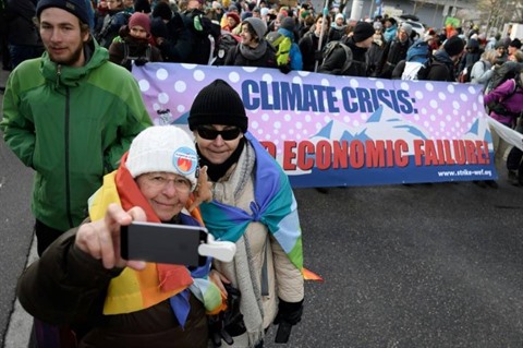 | Départ d'une marche pour le climat de trois jours, à Landquart en Suisse, le 19 janvier, en prélude au Forum économique de Davos. |