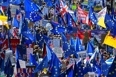 | Manifestation d'ampleur à Londres pour réclamer un nouveau référendum sur le Brexit, le 19 octobre |
