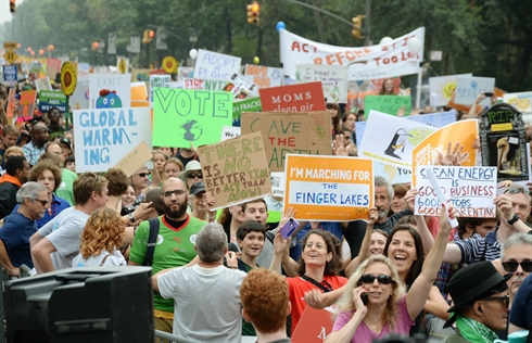 À New York, l'acteur Leonardo DiCaprio, le secrétaire général de l'ONU, Ban Ki-moon, l'ancien vice-président américain Al Gore, le maire de New York, Bill de Blasio, le ministre français des Affaires étrangères Laurent Fabius et la ministre de l'Écologie, Ségolène Royal, se sont joints brièvement aux manifestants, partis de Central Park en fin de matinée.
