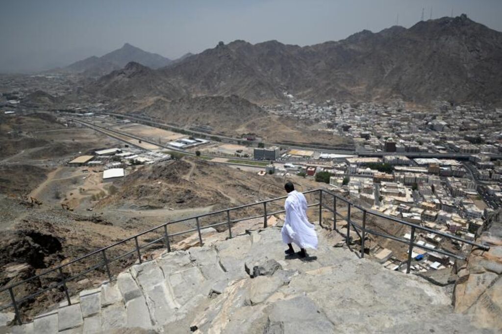 | Un pèlerin descend du mont Jabal Al-Nour après s'être rendu dans la grotte de Hira, le 24 juin à La Mecque, en Arabie saoudite. |