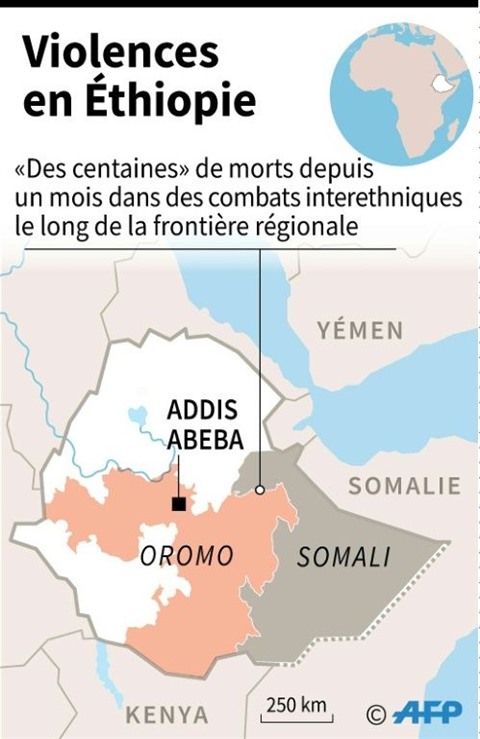 | Les combats ont opposé des membres des ethnies Oromo et Somali le long de la longue frontière entre leurs régions respectives. |