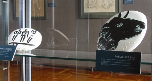 Cette collection, exposée jusqu’au 10 janvier 2013, comprend des assiettes à dessert, des plats décoratifs et des pots où sont représentés les motifs préférés du célèbre peintre, dont une colombe, le visage d’une femme et la tête d’un taureau.