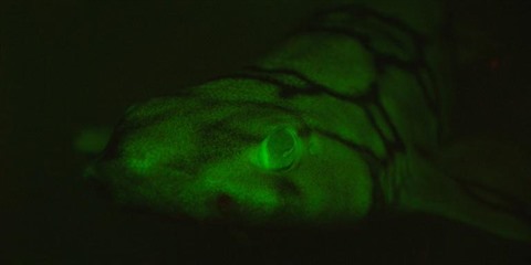 Les deux hommes ont extrait une molécule fluorescente se trouvant uniquement dans les zones les plus claires de la peau et permettant aux requins d'absorber la lumière bleue - la seule à leur parvenir dans les profondeurs (30 m ou plus) où ils vivent - pour émettre du vert.