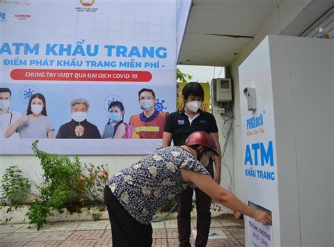 L'homme d'affaires Hoàng Tuân Anh à Hô Chi Minh-Ville a construit un ATM de masques faciaux pour la communauté pendant la deuxième vague de COVID-19. La machine distribue gratuitement des masques emballés individuellement, avec un opérateur à distance pour assurer une distribution équitable et pour rappeler aux destinataires de se laver les mains avant de toucher le distributeur. Lors de la première vague, Hoang a installé le premier distributeur de riz devant son bureau. Le guichet automatique fournit gratuitement 1,5 kg de riz et aurait distribué cinq tonnes de riz au cours de ses deux premiers jours. Les distributeurs de riz et de masques de Hoàng ont été reproduits par d’autres entrepreneurs et organisations caritatives à travers le pays, ont ajouté les auteurs.