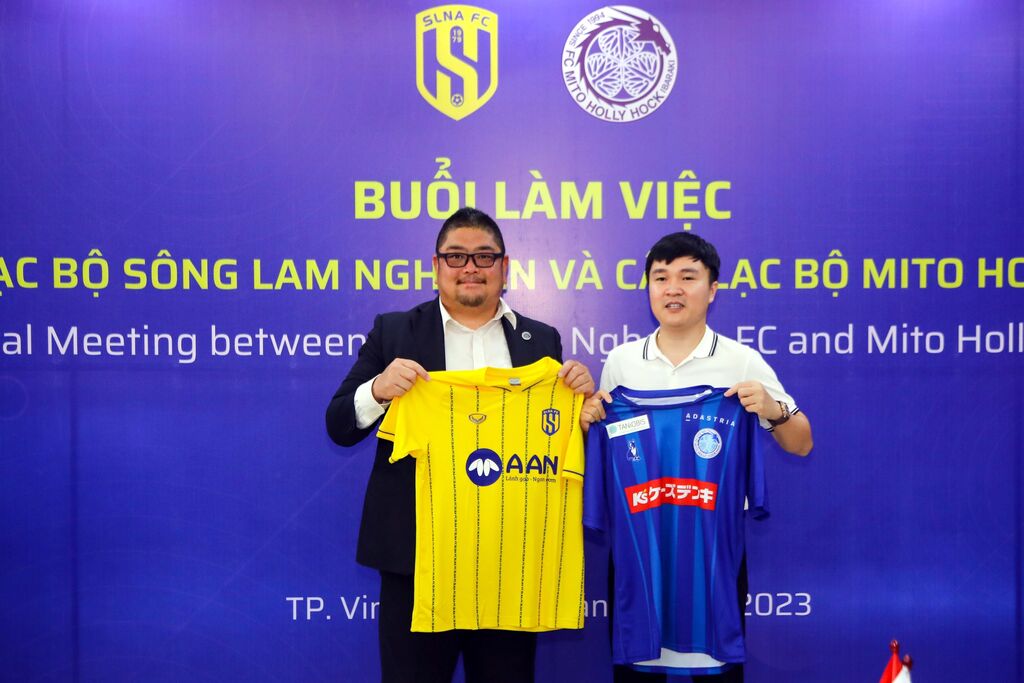 | Des rep ré sentants de Sông Lam Nghê An et du club japonais de Mito HollyHock. |