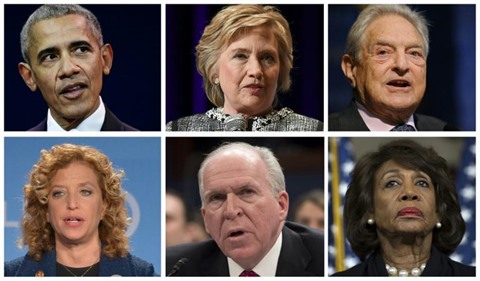 | Combinaison créée le 24 octobre montrant Barack Obama, Hillary Clinton, George Soros, Debbie Wasserman Schultz et Maxine Waters. |