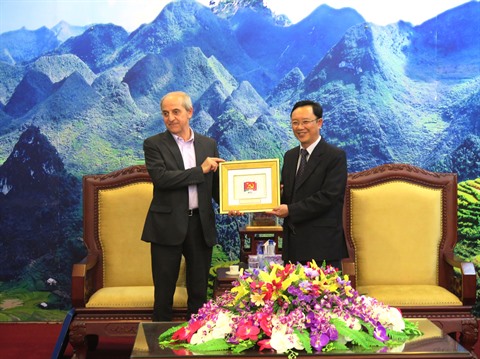 | Le secrétaire adjoint permanent du Comité provincial du Parti pour Hà Giang, Thào Hông Son (droite), et le secrétaire général du Parti communiste italien Mauro Alboresi, le 20 juillet à Hà Giang (Nord). |