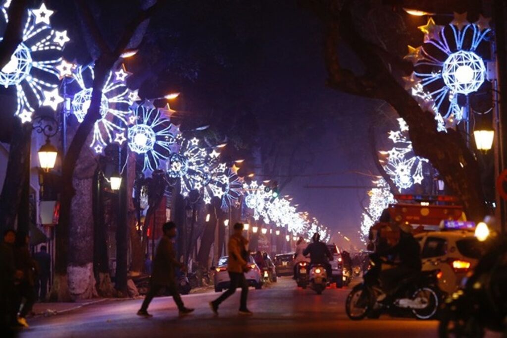 | Une vue nocturne de la rue hanoïenne Tràng Tiên à l'occasion du Nouvel An lunaire 2023. |