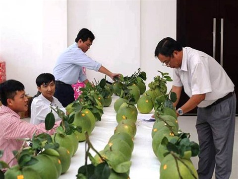 | Contrôle de la qualité des fruits lors du concours "Roi des pamplemousses", tenu en juin dernier à Bên Tre (Sud). |