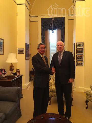 John McCain a affirmé prendre en considération les relations bilatérales, estimant que le Vietnam a un rôle important dans la région. Il s'est engagé à oeuvrer pour renforcer les relations entre les deux pays, notamment dans le règlement des conséquences de la guerre, ainsi que pour lever totalement l'interdiction de ventes d'armes au Vietnam. Le sénateur a émis le souhait d'effectuer cette année une visite au Vietnam, à l'occasion du 20e anniversaire de la normalisation des relations bilatérales.