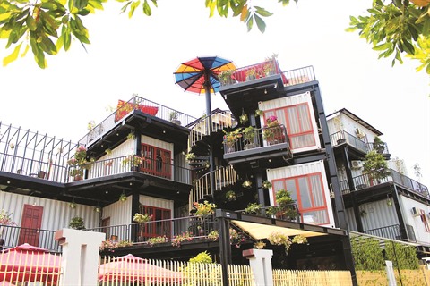 Situé dans la zone 9A du quartier de Bai Cháy, ville de Ha Long, province de Quang Ninh (Nord-Est), le homestay (hébergement chez l’habitant) T&N s’étend sur 500 m², avec 26 chambres de tailles diverses. Il s’agit en fait de 26 grands et petits conteneurs empilés sur quatre niveaux, assemblés de manière habile et esthétique.