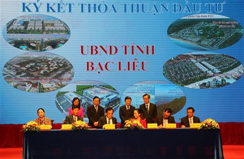 En présence du vice-Premier ministre, Trinh Dinh Dung, et du ministre des Ressources naturelles et de l'Environnement, Trân Hông Hà, les dirigeants de Bac Liêu ont délivré des licences d'investissement aux investisseurs de la centrale éolienne Dông Hai 2, de plusieurs fermes de crevettes de haute technologie, et de la filature de Dông Nam.