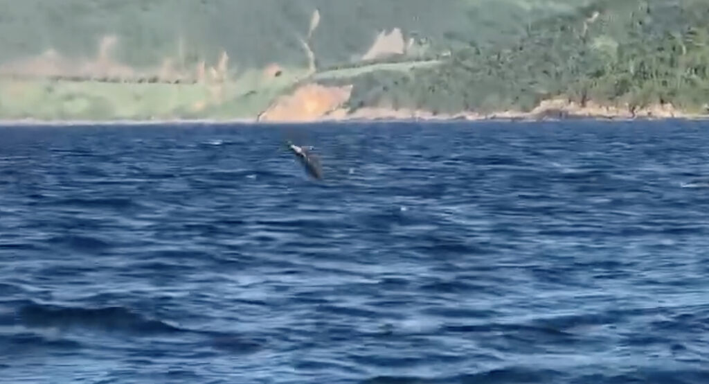 | Capture d'écran de la vidéo enregistrant un dauphin nage dans les eaux près de la péninsule de Son Trà. |
