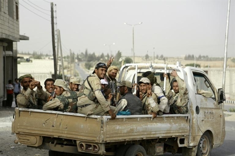 | Des combattants syriens du Conseil militaire de Manbij le 15 juin. |