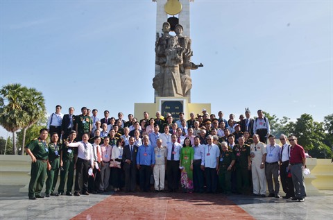 | Photo de famille de la délégation vietnamienne au Mémorial de l'amitié Vietnam - Cambodge, le 31 juillet à Phnom Penh. |