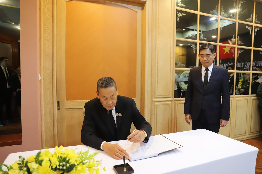 | Le Premier ministre Srettha Thavisin rend hommage au secrétaire général Nguyên Phu Trong. |