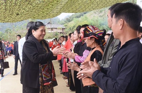 | La vice-présidente de l’Assemblée nationale Tong Thi Phong rencontre des habitants de Muong Lum, province de Son La (Nord). |